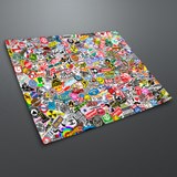 Autoaufkleber Sticker Bomb XL. Fantastische Sticker-Bombe, Collage voller Modemarken, Cartoon-Charaktere und Videospiele unter anderem. Hier findest du die Punkrockgruppe Nofx, die Surfwear-Marke Vans, das Cookie-Monster, das Obey-Logo und hunderte andere.