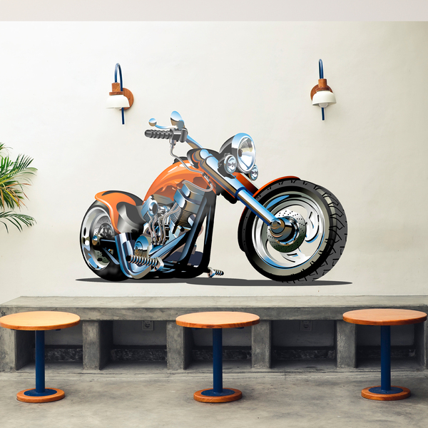 Wandtattoo kinder Motorrad Harley Orange Orange. Design der Göttin des Asphalts. Gilt als eine der emblematischen Marken von Motorrädern in den Vereinigten Staaten. Dieses dekorative Vinyl ist perfekt für die Wand der meisten Biker. Das Dröhnen des besten Motorrads an der Wand.