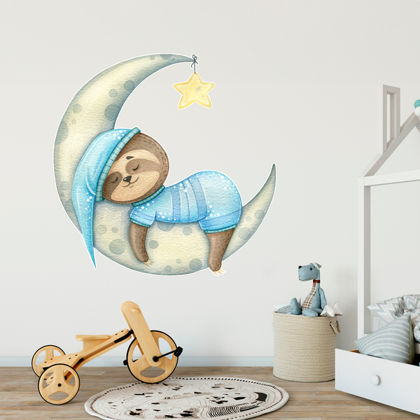 Ein gemütlicher Schlafplatz über den Wolken. Dieses niedliche Wandtattoo für Kinder zeigt einen Panda-Bären, der sich gemütlich an den Mond schmiegt und schläft. Er trägt einen blauen Schlafanzug und sein friedlicher Gesichtsausdruck verrät, wie bequem er es hat. Dekorieren Sie ein Kinderzimmer mit diesem wunderschönen und beruhigenden Design, um eine liebevolle Atmosphäre zu schaffen, die zum Träumen einlädt und für eine gute Nacht sorgt.