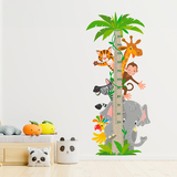 Messlatte für Kinder Aufkleber Dschungeltiere. Erstaunliche Zeichnung einer Palme, mit einer metrischen Tabelle, in der eine Vielzahl von Tieren erscheint. Lustiges Design zur Dekoration des Kinderzimmers, während Sie überprüfen, wie sie aufwachsen und die Tasse der Palme erreichen.