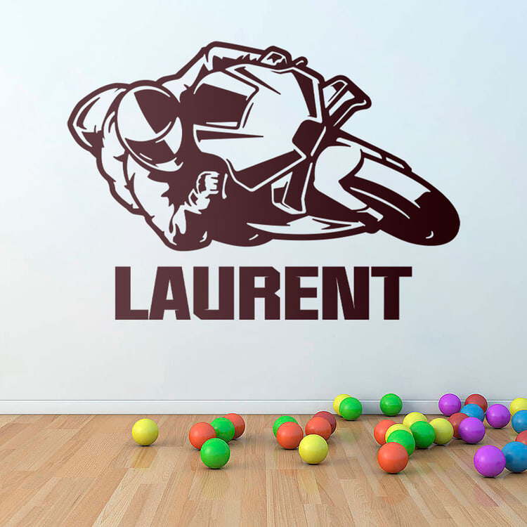 Für zukünftige Motorrad-Champions ist dieses Wandtattoo Rennmotorrad mit Namen pures Adrenalin. Die Silhouette des Fahrers in der Kurve fängt die Geschwindigkeit und Spannung der Rennstrecke ein, perfekt für das Zimmer eines jungen Fans. Unser Wandtattoo Name Junge verwandelt eine Wand in ein Statement. Platzieren Sie es prominent, um Träume vom Podium und eine Leidenschaft für den Rennsport zu inspirieren.