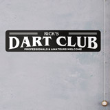 Wandtattoo Dart Club. Originelles Design dieses Posters eines Dartclubs, das Sie mit Ihrem Namen personalisieren können. Sie können auf Englisch lesen: Darts-Club, Profis und Amateure willkommen. Treffen Sie ins Schwarze, indem Sie diese Klebefolie für Ihre Bar oder Ihr Zuhause kaufen.
