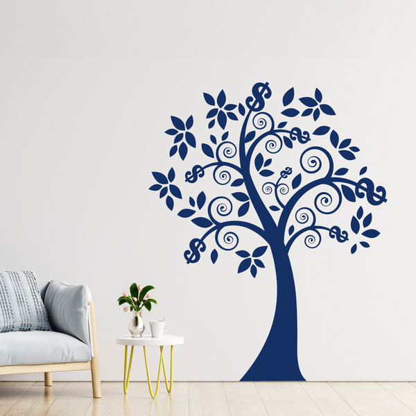 Wandtattoo Blumen Geld-Baum. Dekorativer Vinyl Blumengeldbaum. Pflanze-inspiriertes Ornament basierend auf dem Geldbaum. Laut Feng Shui, einem uralten System, das in China verwendet wird, um das Leben zu verbessern, dient diese Pflanze dazu, positive Schwingungen zu erzeugen und den Wohlstand des Besitzers anzuziehen