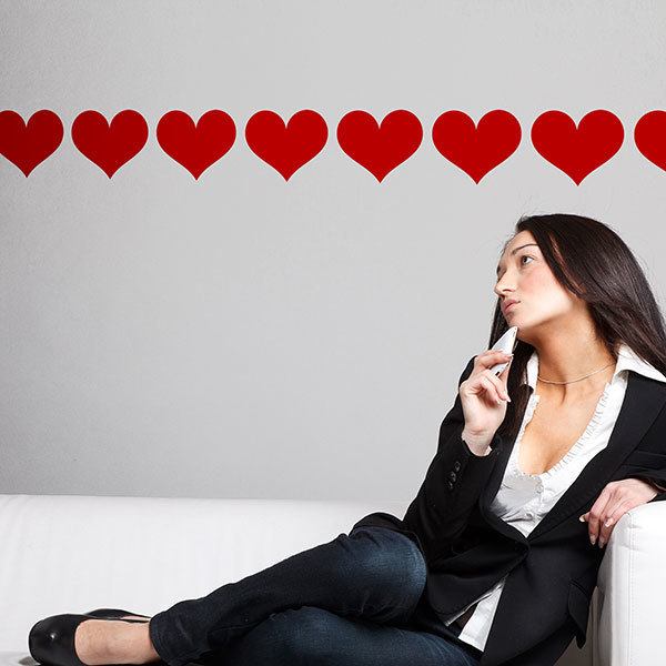 Eine romantische Dekoration für Ihre Wände. Diese selbstklebende Bordüre mit einem Muster aus stilisierten Herzen verleiht jedem Raum eine intime und gemütliche Note. Das Design ist ideal für das Schlafzimmer eines Paares oder um eine liebevolle Atmosphäre zu schaffen. Die Bordüre ist nahtlos wiederholbar und lässt sich einfach anbringen, um eine durchgehende Linie der Zuneigung zu gestalten.