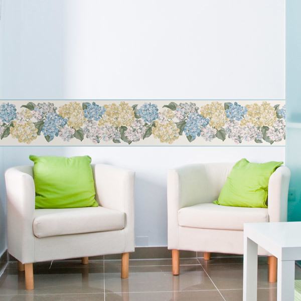 Ein Fest der Farben für Ihre Wände. Dieser fantastische dekorative Volant aus Blumen zeigt ein dichtes Blumenmuster mit verschiedenen Farben in Pastelltönen. Dieser auffällige Volant ist ideal für die Dekoration von Innenräumen in Wohn- und Geschäftsräumen, in denen Sie ein warmes und natürliches Gefühl haben möchten. Die selbstklebende Bordüre ist für eine durchgehende Gestaltung nahtlos wiederholbar.