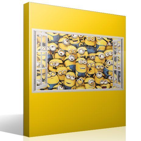 Chaos und Spaß brechen aus! Dieses urkomische Wandtattoo mit Fenster-Illusion gibt den Blick frei auf eine riesige Armee der gelben Minions. Die niedlichen Charaktere aus dem Film 'Ich – Einfach unverbesserlich' scheinen direkt aus der Wand zu stürmen. Dieses Panorama-Design ist ein absolutes Muss für jeden Fan und verwandelt das Kinderzimmer in eine lustige und turbulente Szene voller Lacher.