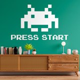 Wandtattoo Space Invaders Press Start. Originalentwurf eines der Weltrauminvasoren, die in Taitos Videospiel Martian Killer von 1978 auftauchen. Darunter steht "PRESS START", wenn du darauf drückst, beginnt das Spiel. Es ist ganz einfach, jetzt zu bestellen. Sie haben die Wahl zwischen mehreren Größen und einer breiten Farbpalette. Ideal zur einfachen Dekoration von Fahrzeugen, Wänden, Türen und den meisten Oberflächen.