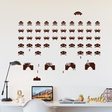 Wandtattoo Weltraumeindringlinge. Mythisches Videospiel von 1978, das eine authentische Revolution in der Welt der Konsolen war. In dieser Vinyl hast du die Formation, mit der die Spiele begonnen haben. Ein sehr klassisches Design, das die echten Fans des Spiels gerne zu Hause hätten.
