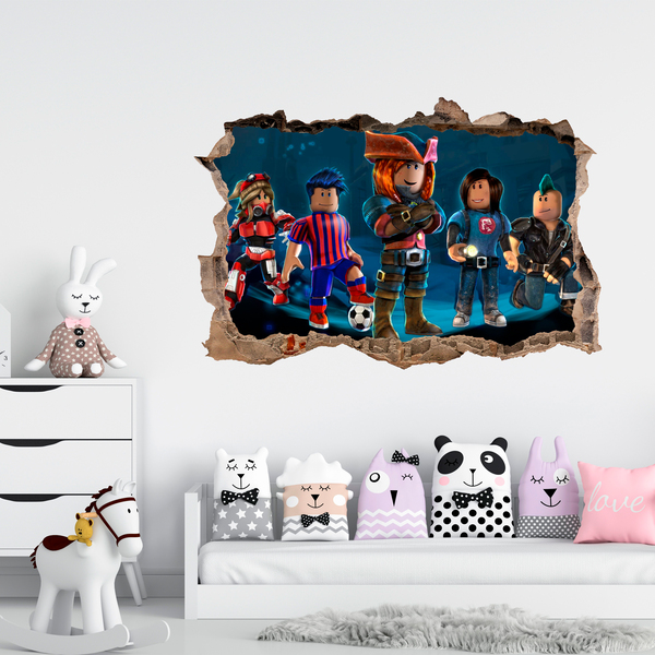 Wandtattoo Loch Roblox Jailbreak. Design mit einigen der Charaktere aus dem berühmten Roblox-Videospiel. Es ist ein Open-World-Actionspiel mit einem Räuber-und-Gendarm-Thema. Eines der Spiele mit der größten Anzahl von gleichzeitigen Spielern und einer der meisten Anhänger in der Welt.