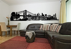 Wandtattoo New Yorker Skyline. Zweifellos ist die Skyline von New York eine der bekanntesten. Wir haben es in unzähligen Fotos, Fernsehserien, Filmen und Comics gesehen. Dieses dekorative Vinyl hat als Hauptprotagonist die Brooklyn Bridge