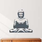 Wandtattoo Buddha meditiert. Entwurf einer Buddhastatue, die in seiner typischen Kleidung betet. Siddhartha Gautama, besser bekannt als Gautama Buddha, Sakiamuni, oder einfach der Buddha, war ein Asket (Sanniasin) und Weiser, auf dessen Lehren der Buddhismus gegründet wurde. Ideal zur Dekoration des Ess- oder Wohnzimmers.