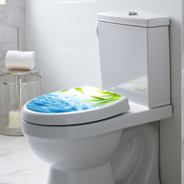 Bringen Sie die Frische und Gelassenheit der Natur in Ihr Badezimmer mit diesem Aufkleber für den Toilettensitz. Das hyperrealistische Design fängt den Moment ein, in dem Regentropfen auf das Wasser treffen und sanfte Wellen erzeugen. Das Bild vermittelt ein Gefühl von Ruhe und Sauberkeit, ideal für eine entspannende Atmosphäre. Dieser Aufkleber verwandelt Ihren Toilettendeckel in ein Fenster zu einem friedlichen Teich und verleiht ihm eine elegante Note.